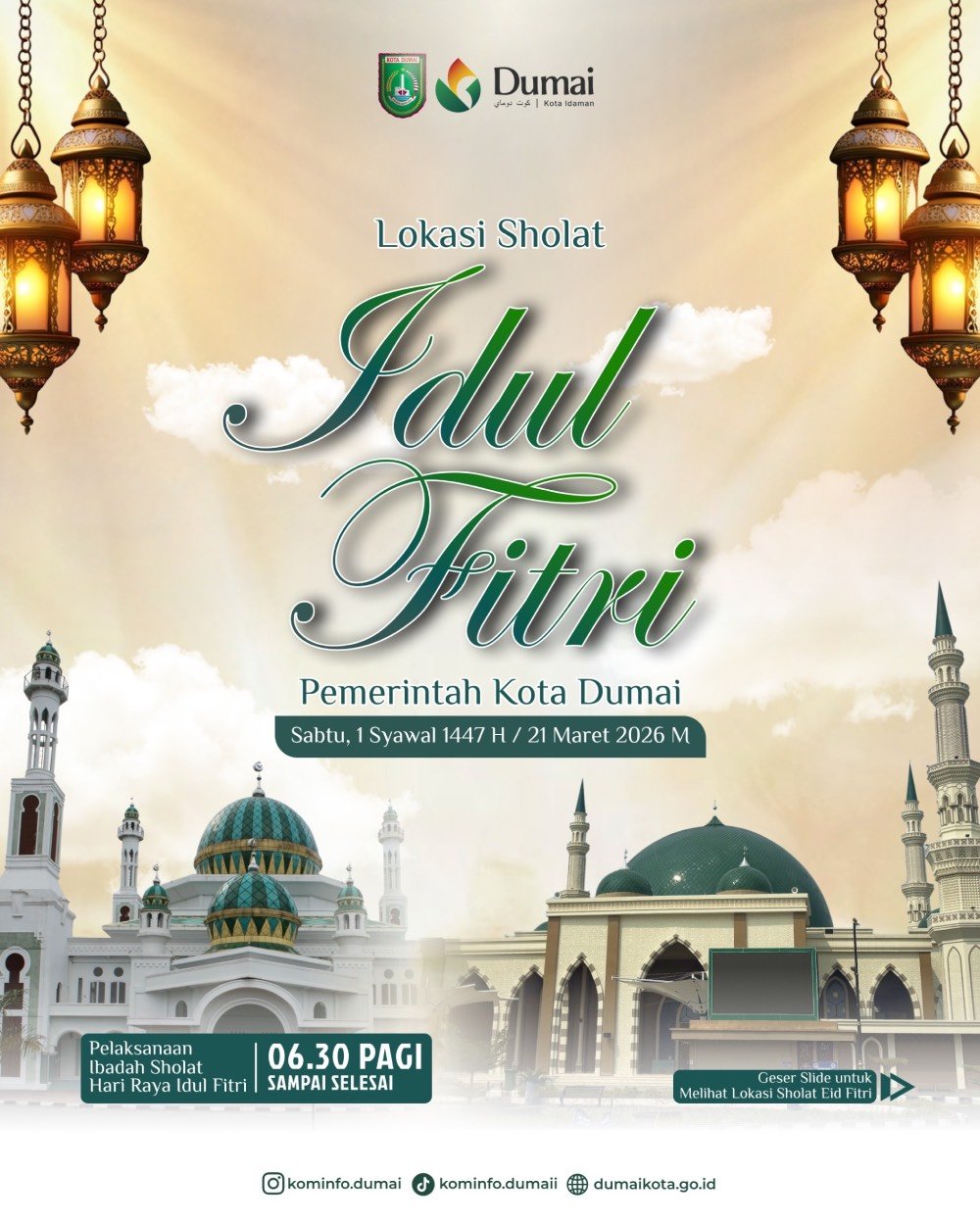 Anugrahhukum.com DUMAI, 19 Maret 2026 – Di bawah gema takbir yang mulai menyapa, Pemerintah Kota Dumai secara resmi mengumumkan bahwa hari raya Idulfitri 1 Syawal 1447 Hijriah jatuh pada Sabtu, 21 Maret 2026. Keputusan ini selaras dengan hasil Sidang Isbat nasional yang dipimpin Menteri Agama RI, Nasaruddin Umar, di Jakarta.